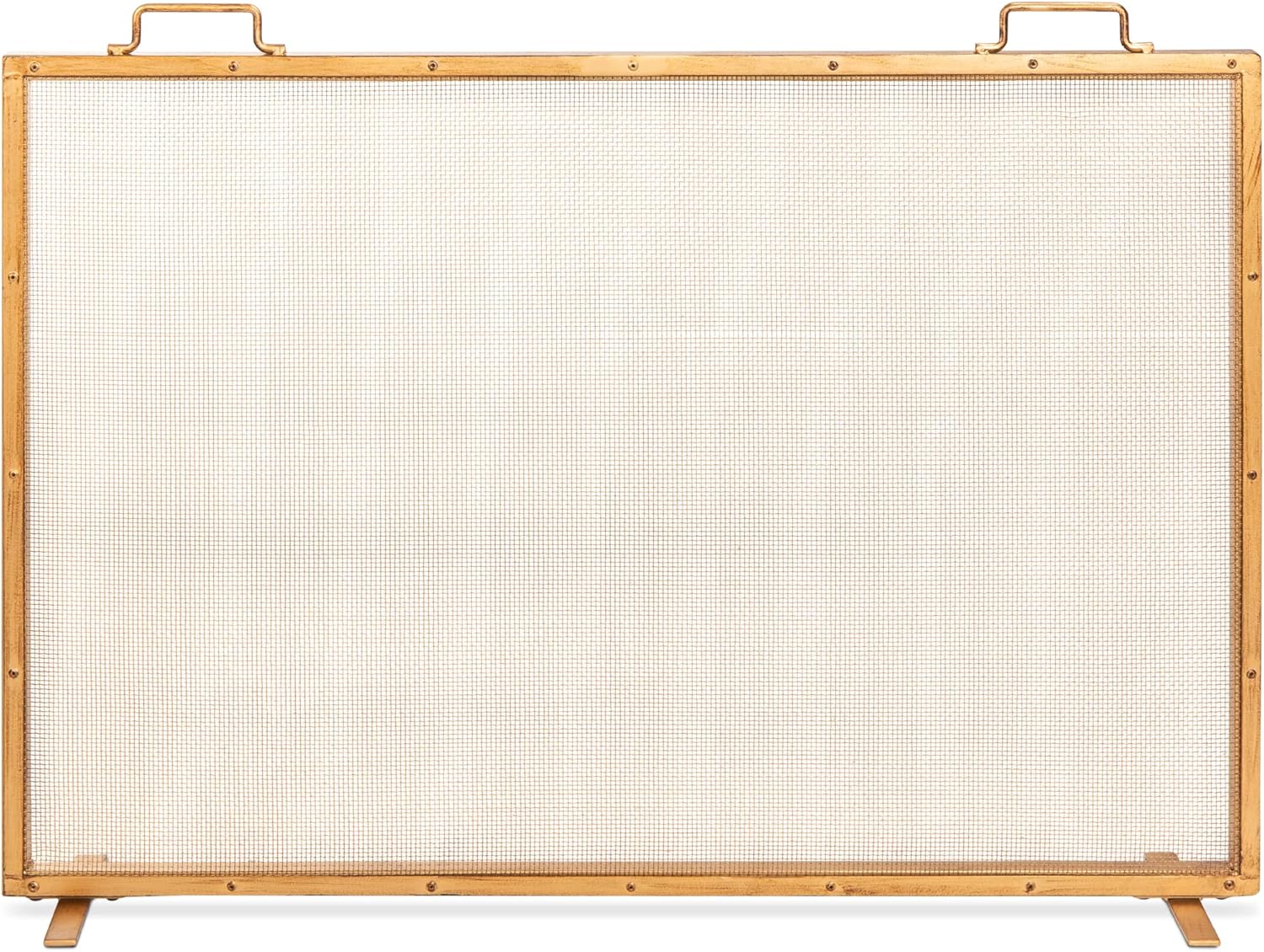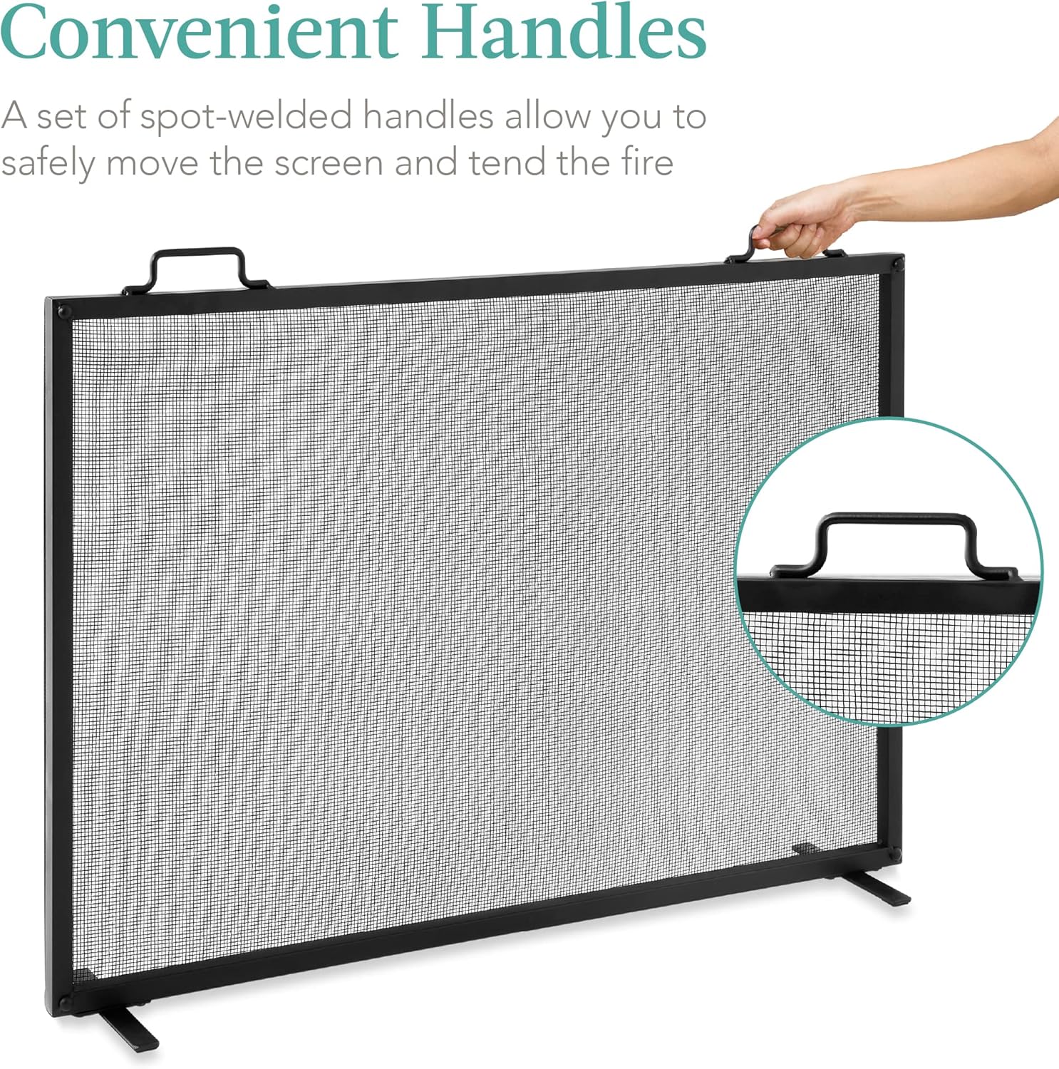 Best Choice Products 38x27in Single Panel Fireplace Screen Handcrafted Steel Mesh Spark Guard for Living Room, Bedroom Décor w/Handles - Black
